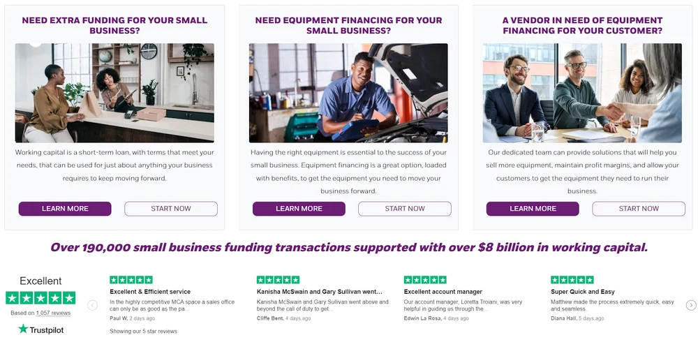 In addition to merchant cash advance, National Funding provides traditional business loans, equipment financing, and leasing.