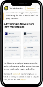 Investing.io keeps its content fresh. They send out a newsletter twice a week with the latest investment news and resources. They also have the “Website Investing” podcast, which shares stories and advice from online business pros.